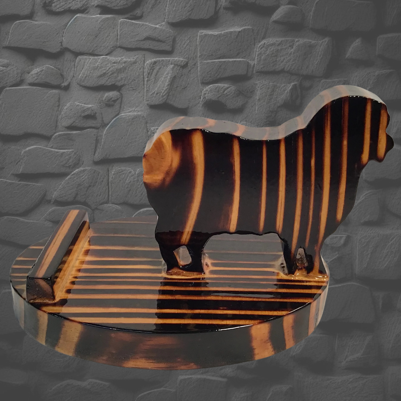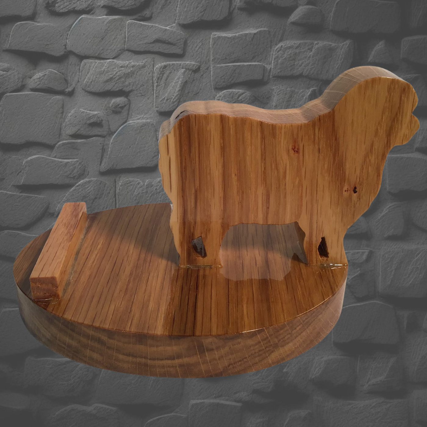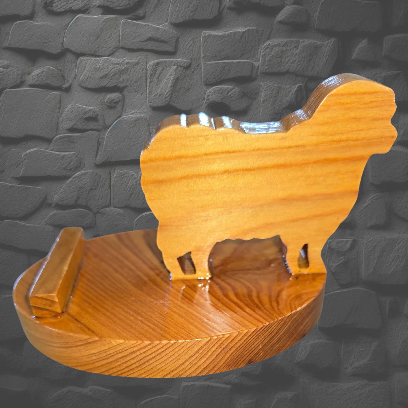 Handcrafted wooden phone stand shaped like a sheep! Choose from Cedar, Walnut, Burnt Pine, or Oak. Hand-cut with a scroll saw and finished with five protective coats of polyurethane. Perfect for propping up your phone while cooking, video calling, or bedside browsing. Supports both upright and sideways positions—charge while you watch. Each piece is unique; colors may vary slightly.
