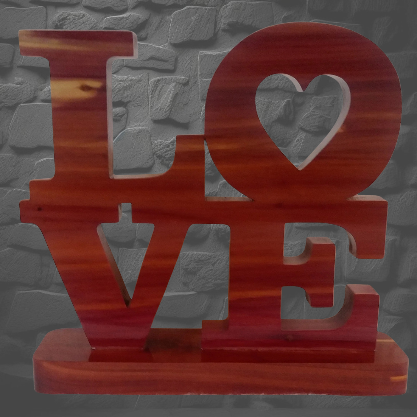 Love Stand comes in various type woods then clear finished. Approximately 6" x 7" x 3/4"