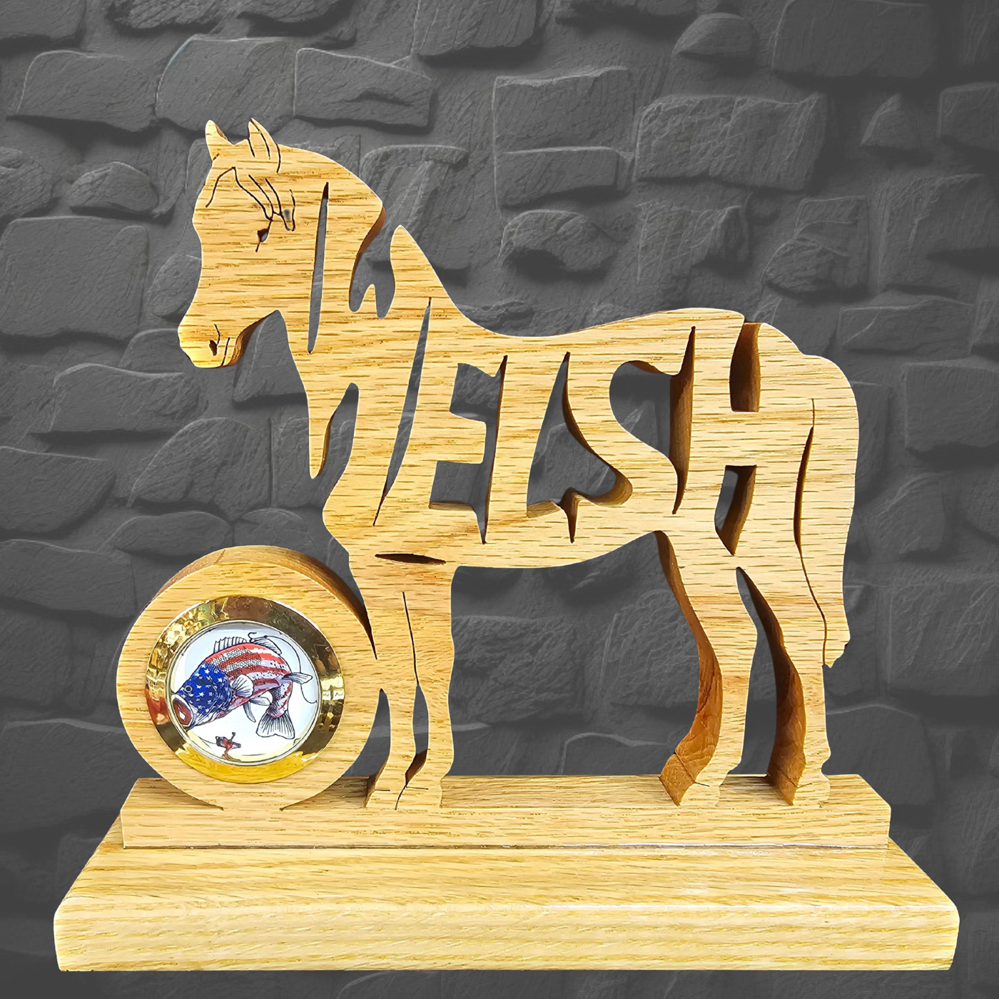 The Welsh is your go-to piece for customization! Choose between a 2" clock insert or picture insert—swap it out whenever you need a fresh battery or want to switch up your display. Hand-finished with five coats of polyurethane for a smooth, durable look, each piece is beautifully unique with natural color variations. Approximate dimensions: 2 3/4" wide x 8 1/2" long x 8" tall. (Note: You'll pick one insert style—not both!)