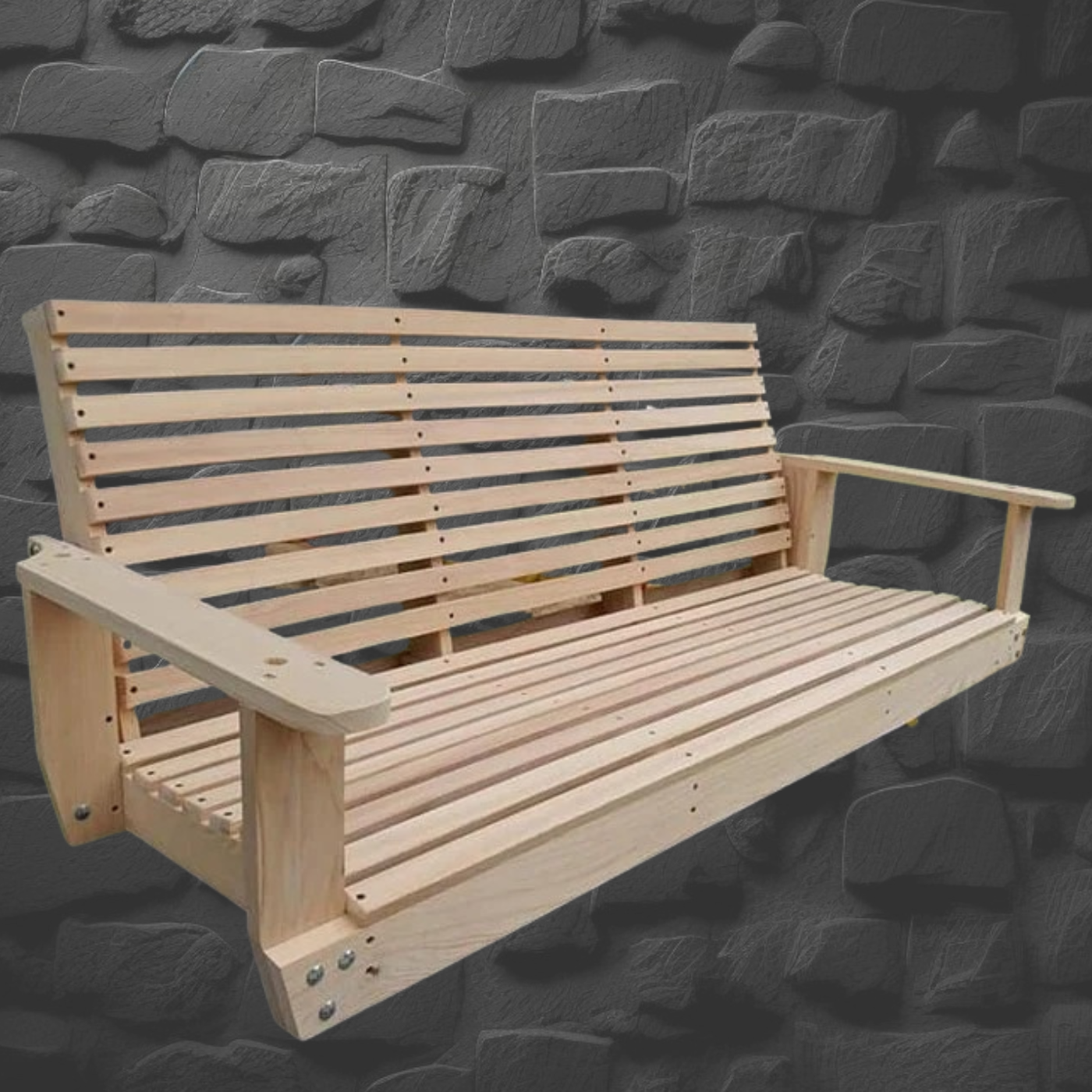 Enjoy a relaxing day on our Old Fashion swing designed with a comfortable contoured seat and back. Swing features a flat front which allows legs to bend comfortably, a back that is flat at the top which allows use as an armrest, and support structures so weight is not a concern. All swings are bolted and screwed together for stability. For outdoor use, only made in are cedar and cypress as these are bug and rot resistant. For Indoor use, other wood types can be requested, please contact us. If website is out of stock, orders may take up to 2 weeks (14 business days) for completion depending on demand. Pick up only at our 2 locations Russellville, KY and Holden, LA. Our swings are measured by seat area (inside of arms), sitting area is 6 ft. Overall length is 6 ft 7 inches.